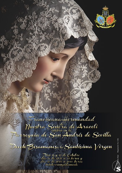 Arte Sacro. La Franciscana Hermandad de Nuestra Señora de Araceli con sede canónica en la Parroquia de San Andrés celebrará durante los días 11 y 12 de octubre; solemne besamanos en honor a su venerada titular, en horarios de 17 a 21 horas el día 11 y el día 12 de 10 a 21 horas ininterrumpidamente. Asimismo la Hermandad ha editado un cartel para este culto: el cuál, recoge una fotografía de la Santísima Virgen de perfil con una mantilla.