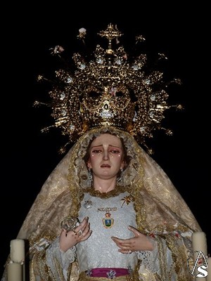 Arte Sacro. Los jóvenes soleanos de la Hermandad de la Soledad de Aznalcóllar, con motivo de su 425 Aniversario Fundacional que se cumple en 2015, decidieron pintarle un tapiz sobre palio sobre damasco negro, para que sea estrenado el próximo Sábado Santo.