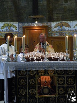 La santa misa estuvo presidida por su párroco titular, Ignacio Jiménez Sánchez- Dalp, acompañado por el sacristán Antonio Vargas en las labores litúrgicas y varios jóvenes de monaguillos. Durante la homilía el párroco explico la historia de San Antón, amigos de los animales.