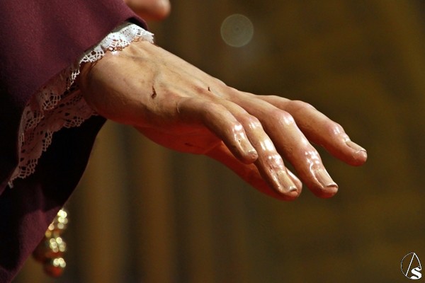 En relación con la intervención de conservación-restauración efectuada en la imagen, se llevaron a cabo en primer lugar los estudios previos (estudio radiológico, examen de la obra con iluminación ultravioleta, estudio de la superficie polícroma con lupa binocular, análisis estratigráfico e identificación de materiales polícromos y estudio de correspondencia de capas polícromas), que determinaron que los principales problemas de conservación tenían su origen en el envejecimiento de los materiales tanto originales como los utilizados en anteriores intervenciones, y en la manipulación y uso a que es sometida como imagen devocional y procesional.